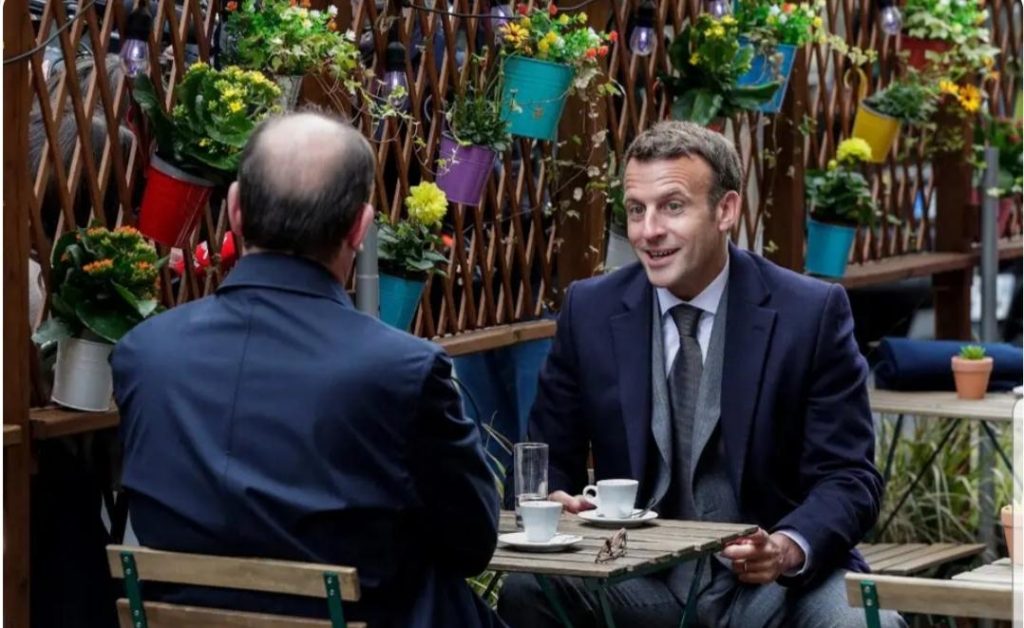 ■هذا يوم الأربعاء، قبل وقت قصير ، شارك إيمانويل ماكرون وجان كاستدكس قهوة شرفة إحدى المقاهي أمام كاميرات قنوات العالم والمصورين الصحفيين. و أراد رئيس الجمهورية ورئيس الوزراء أن يجسد المرحلة الجديدة من التقديم، الذي تميز بإعادة فتح الحانات والمطاعم ودور السينما والمسارح والمتاحف.