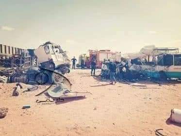 وقد جاء في حصيلة أولية قدمتها الحماية المدنية في بيان لها أن 12 شخصا لقوا حتفهم و ثمانية أخرون أصيبوا بجروح خطيرة في حادث اصطدام عنيف وقع على 14سا و 30د بين شاحنة ذات مقطورة تحمل الحصى وحافلة لنقل المسافرين من الحجم الصغير تعمل على الخط الرابط بين سيدي بلعباس-بوسمغون (ولاية البيض).