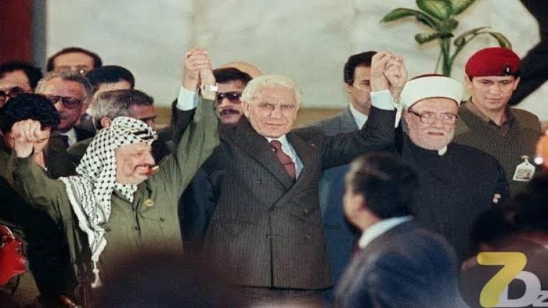 ففي 15 نوفمبر 1988, ألقى الرئيس الفلسطيني الراحل ياسر عرفات كلمته الشهيرة في المجلس الوطني الفلسطيني في دورته ال19 بالجزائر, جاء فيها : “إن المجلس الوطني يعلن باسم الله وباسم الشعب العربي الفلسطيني, قيام دولة فلسطين فوق أرضنا الفلسطينية, وعاصمتها القدس الشريف”.