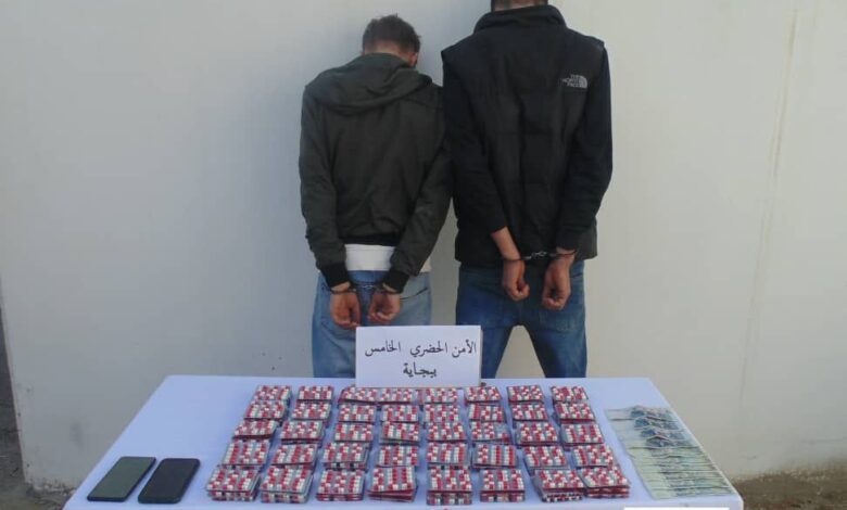 تمكنت عناصر الأمن الحضري الخامس ببجاية، خلال بداية هذا الأسبوع من توقيف جماعة إجرامية تتكون من 03 أشخاص تتراوح أعمارهم بين 23 و 27 سنة، تحترف المتاجرة بالمؤثرات العقلية بمدينة بجاية، تفاصيل العملية جاءت بعد ورود معلومات إلى مصالح الشرطة مفادها تواجد شخص يقوم ببيع وترويج المؤثرات العقلية بمدينة بجاية وهو بصدد إدخال كمية معتبرة من المؤثرات العقلية إلى ولاية بجاية، إنطلاقا من ولاية تقع بجنوب الوطن، بعد إستغلال هذه المعلومات وبتكثيف الأبحاث والتحريات تم تحديد هوية المشتبه فيه، وبعد عملية مراقبة مسكنه المتواجد بحي الطرق الأربعة ببجاية تم رصده وبحوزته كيس بلاستيكي وبعد توجهه إلى سوق المواشي سابقا القريب من المكان، وأثناء شروعه في عملية التسليم لشخص آخر تم مداهمة المكان وتوقيفه رفقة ذلك الشخص، خلال العملية تم ضبط وحجز 196 مشط من المؤثرات العقلية بمجموع 2940 كبسولة من نوع بريغابالين، كما تم حجز مبلغ مالي قدره 20000 دج بحوزة المشتبه فيه الرئيسي، وبتفتيش مسكن هذا الأخير تم العثور على 41 قرص مهلوس و 20 علبة فارغة لنفس الدواء، لتصبح الحصيلة الإجمالية المحجوزة 2981 كبسولة، التحقيق أفضى إلى تحديد هوية مشتبه فيه ثالث متورط في القضية وتوقيفه.
