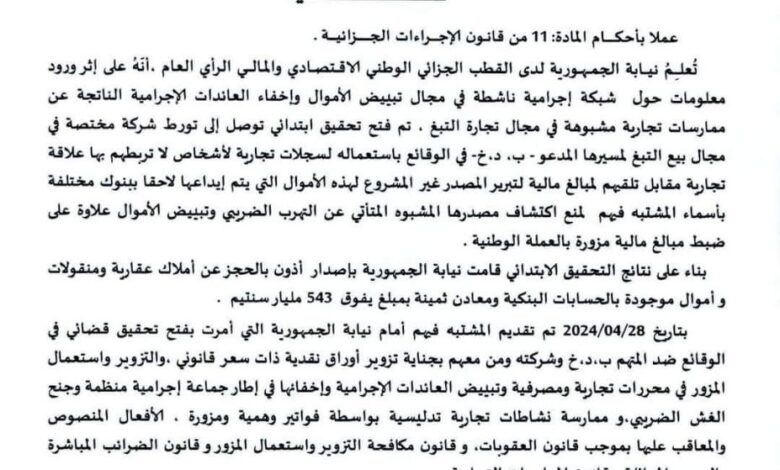 عااااجل حجز اكثر من 543 مليار سنتيم لممتلكات شركة ” نور خان” للتبغ في قضية تبييض الأموال بعين مليلة بأم البواقي