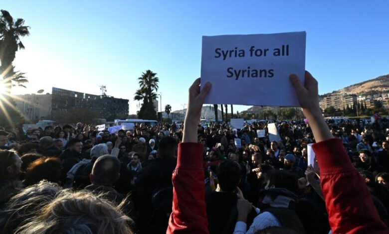 - تغيير السلطة: يأتي التجمع عقب تولي “هيئة تحرير الشام” السلطة في دمشق، والتي كانت تُعرف سابقًا باسم “جبهة النصرة”. ورغم محاولاتها طمأنة الأقليات وتقديم خطاب معتدل، فإنها لا تزال تُصنف كمنظمة إرهابية لدى العديد من الدول الغربية.
