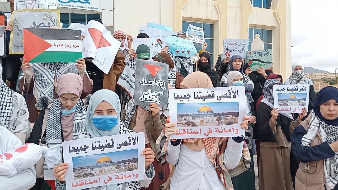 كما شهدت الوقفة حضورًا لافتًا من الأساتذة وبعض إطارات الجامعة، في مشهد وحد جميع مكونات الأسرة الجامعية حول قضية تعتبرها الأمة العربية والإسلامية رمزًا للعدالة والحرية.