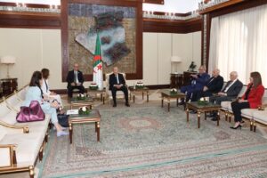 وجرى اللقاء بحضور كل من بوعلام بوعلام، مدير ديوان رئاسة الجمهورية، وأحمد عطاف، وزير الدولة وزير الشؤون الخارجية والجالية الوطنية بالخارج والشؤون الإفريقية، وعمار عبة، مستشار لدى رئيس الجمهورية مكلف بالشؤون الدبلوماسية، إضافة إلى سفيرة الجزائر بسلوفينيا السيدة صبرينة باي.