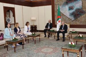 استقبل رئيس الجمهورية، السيد عبد المجيد تبون، اليوم الأربعاء، السيدة تانيا فايون، نائبة رئيس الوزراء ووزيرة الشؤون الخارجية والأوروبية لجمهورية سلوفينيا، التي تقوم بزيارة رسمية إلى الجزائر على رأس وفد رفيع المستوى.