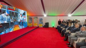 في المحطة الثالثة من برنامج الزيارة، تفقد الوزير الأول، السيد سيفي غريب، والوفد الوزاري المرافق، مشروع تأهيل وتوسيع التجهيزات ومعدات صناعة زجاج المائدة، على مستوى مؤسسة الزجاج الجديدة NOVER التابع لمجمع ENAVA، حيث إطلاع على مدى تقدم الاشغال وتلقى شروحات وافية حول المشروع.