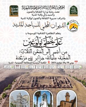 شهدت ولاية المدية احتضان واحدة من أبرز التظاهرات الثقافية الوطنية الخاصة بإحياء التراث الزيري، حيث نظّم الديوان المحلي للسياحة لبلدية المدية، وتحت إشراف مديرية الثقافة والفنون، اليوم الدراسي الوطني الموسوم بـ “على خطى بولوغين… من أشير إلى المدن العتيقة: المدية، مليانة، وجزائر بني مزغنة” وذلك يوم 19 نوفمبر 2025 بالمكتبة الرئيسية للمطالعة العمومية.