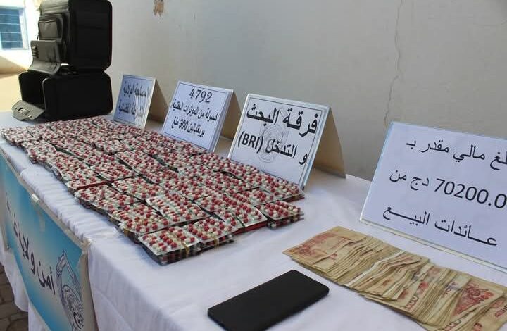 القضية الأولى: توقيف مشتبه فيه وحجز 4792 كبسولة من المؤثرات العقلية ومبلغ مالي كبير يُشتبه في كونه من عائدات إجرامية.