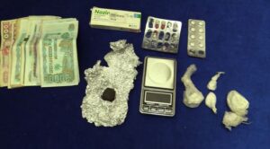 القضية الخامسة: توقيف شخصين وحجز 7.65 غرام من الكوكايين و8 أقراص مؤثرات عقلية وميزان إلكتروني.