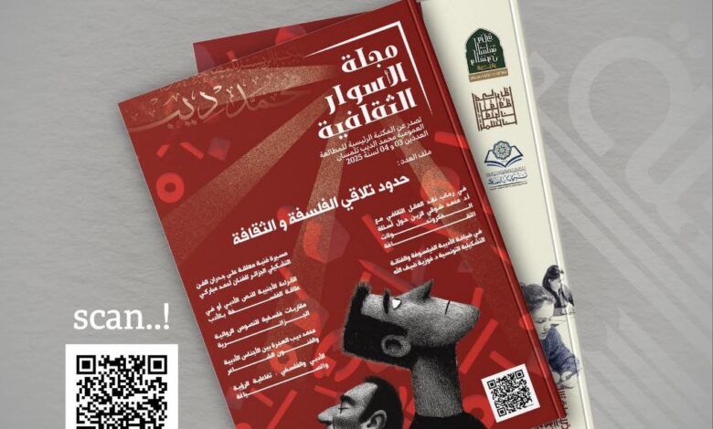أعلنت المكتبة الرئيسية للمطالعة العمومية محمد ديب تلمسان عن صدور العددين 3/4 من مجلتها الثقافية “الأسوار” لسنة 2025، تحت عنوان: “حدود تلاقي الفلسفة والثقافة”، وذلك في إطار مواصلة جهودها الرامية إلى نشر المعرفة وتعزيز ثقافة القراءة وتوسيع فضاءات الحوار الفكري داخل المجتمع.